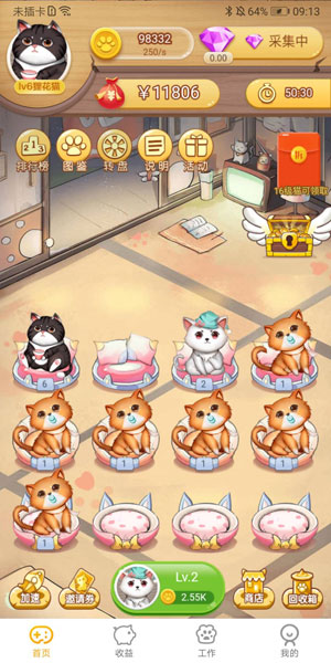 撸猫有财是北京美云科技推出的一款合成赚钱的小游戏,让你玩游戏的同时也能赚零花钱,合成一只终极招财猫预计每天享受约300元左右的分红,完全0投入仅需每天动动手指头,快来一起赚钱吧。